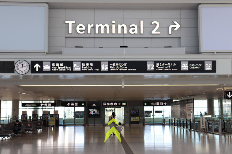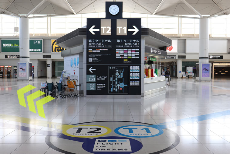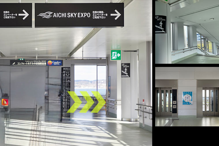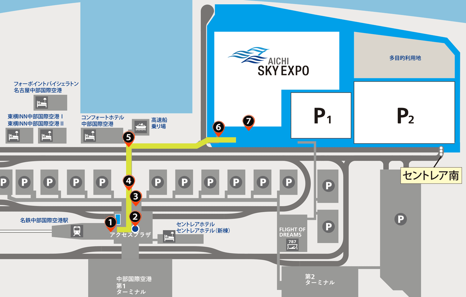名鉄中部国際空港駅からの行き方は下記の案内図をご参照ください。(写真をクリックして拡大できます。)