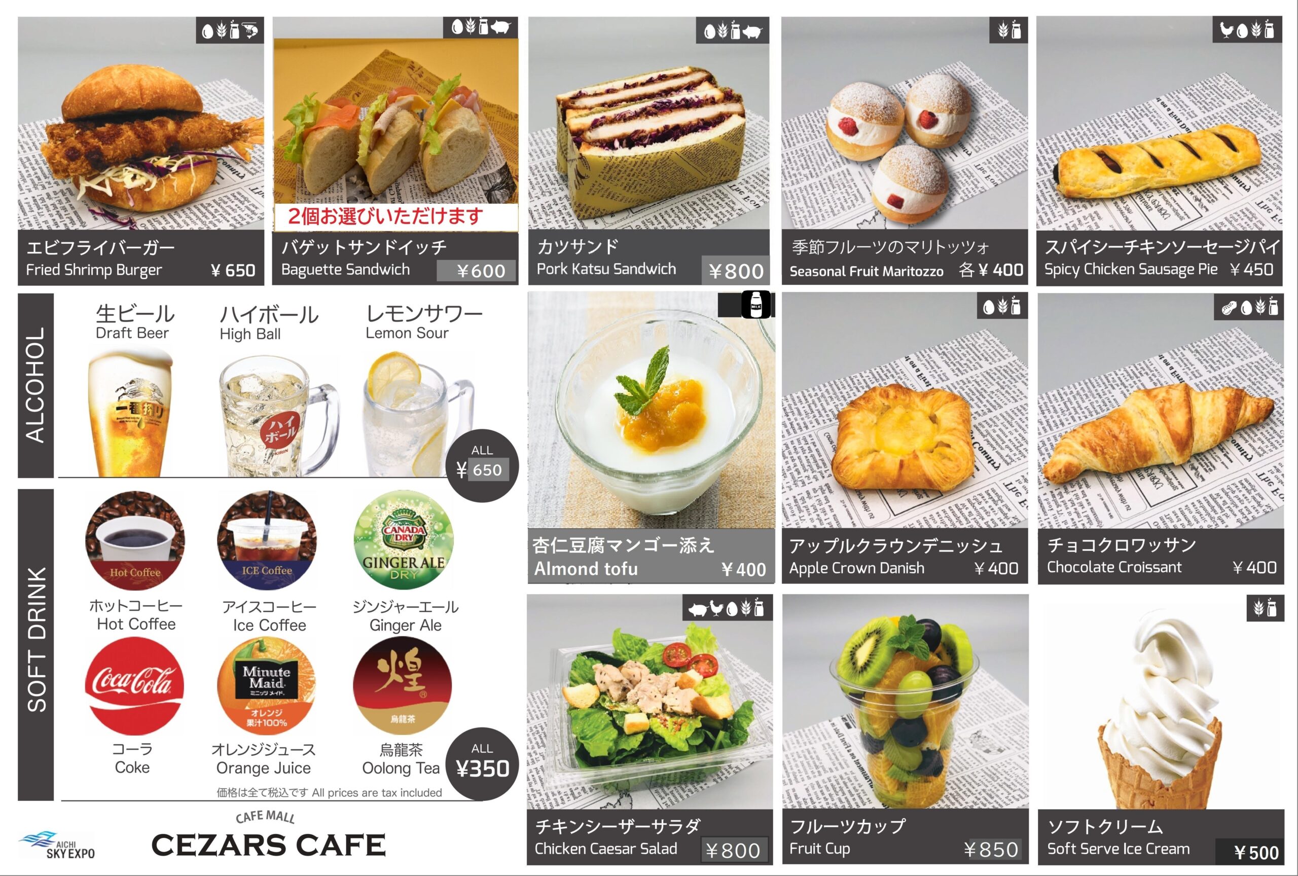 Aichi Sky Expoには共用部にカフェが2か所あり、サンドウィッチやスイーツ、ドリンクなどを提供しております。